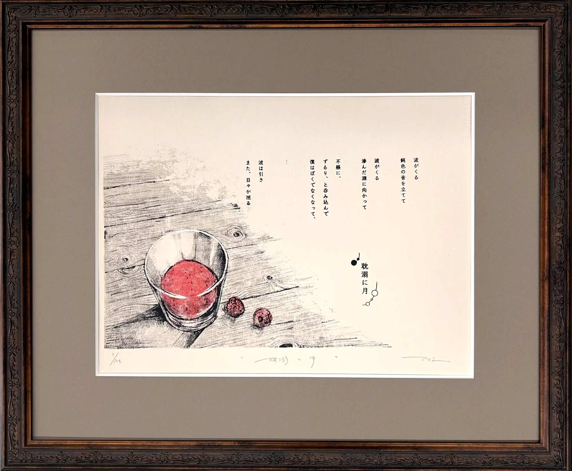 キャプション: 【耽溺に月】2025制作 リトグラフ 波は引き また、日々が巡る
